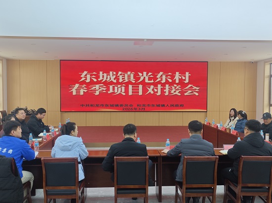 为凝聚工作合力、加快项目推进,以高质量项目引领乡村全面振兴,3月14日上午,东城镇组织召开春季项目对接会,对光东村实施项目进行再部署、再推进。镇党委、政府主要领导、光东村“两委”班子、项目合作企业代表齐聚一堂,共商发展大计、共破发展难题、共绘美好未来。
