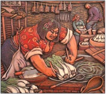 那个时候不是不吃鲜菜,是吃不上鲜菜。冬天,人们为备足越冬蔬菜,除了在地窖里贮藏白菜、萝卜外,家家都渍酸菜。渍制方法是:把鲜菜洗干净后,用热水浸烫后放到大缸当中,一层菜一层盐,灌上一些水,上面再用大石头压起来,一段时间过后,大白菜就发酵了,这样渍制的酸菜一直可以保存到第二年开春。酸菜可做汤、填火锅、做馅等食用。虽然现在人们四季都可以吃上鲜菜了,但是冬天吃酸菜这个习惯一直延续下来,甚至夏天也渍酸菜吃。