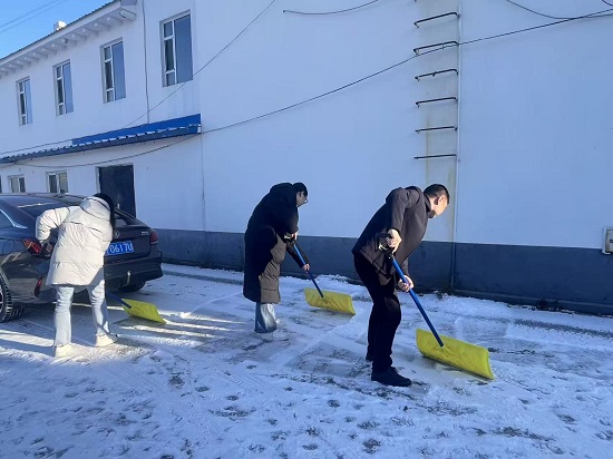 领导带头作表率,示范引领聚合力。降雪伊始,镇领导班子第一时间部署,建立“分片包干、责任到人”机制,划定机关院落、主次干道、公共活动区域等重点范围。班子成员以身作则、冲锋在前,带领机关干部不畏严寒、分工协作,短时间内完成院内通道、办公区域连接处及公共区域积雪清扫,保障机关运转顺畅,为办事群众和干部职工筑牢安全防线,树立鲜明工作标杆。